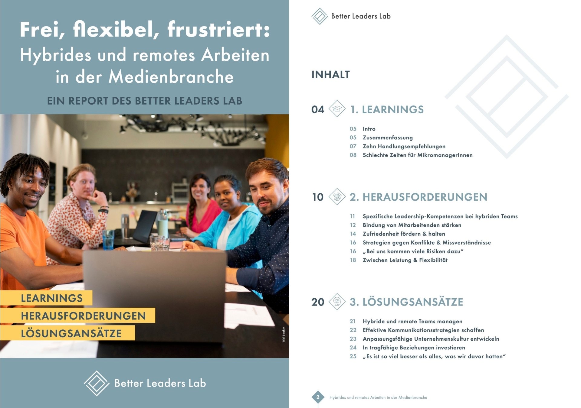 Für diesen Better-Leaders-Lab-Report habe ich zwischen Dezember 2023 und Februar 2024 insgesamt fünf qualitative Interviews mit Medienorganisationen geführt, die ich als besonders progressiv einordne. Die Gespräche wurden durch einen standardisierten Fragenkatalog ergänzt und ermöglichen einen seltenen Einblick in hybrides bzw. remotes Arbeiten, das uns mutmaßlich noch lange begleiten wird.